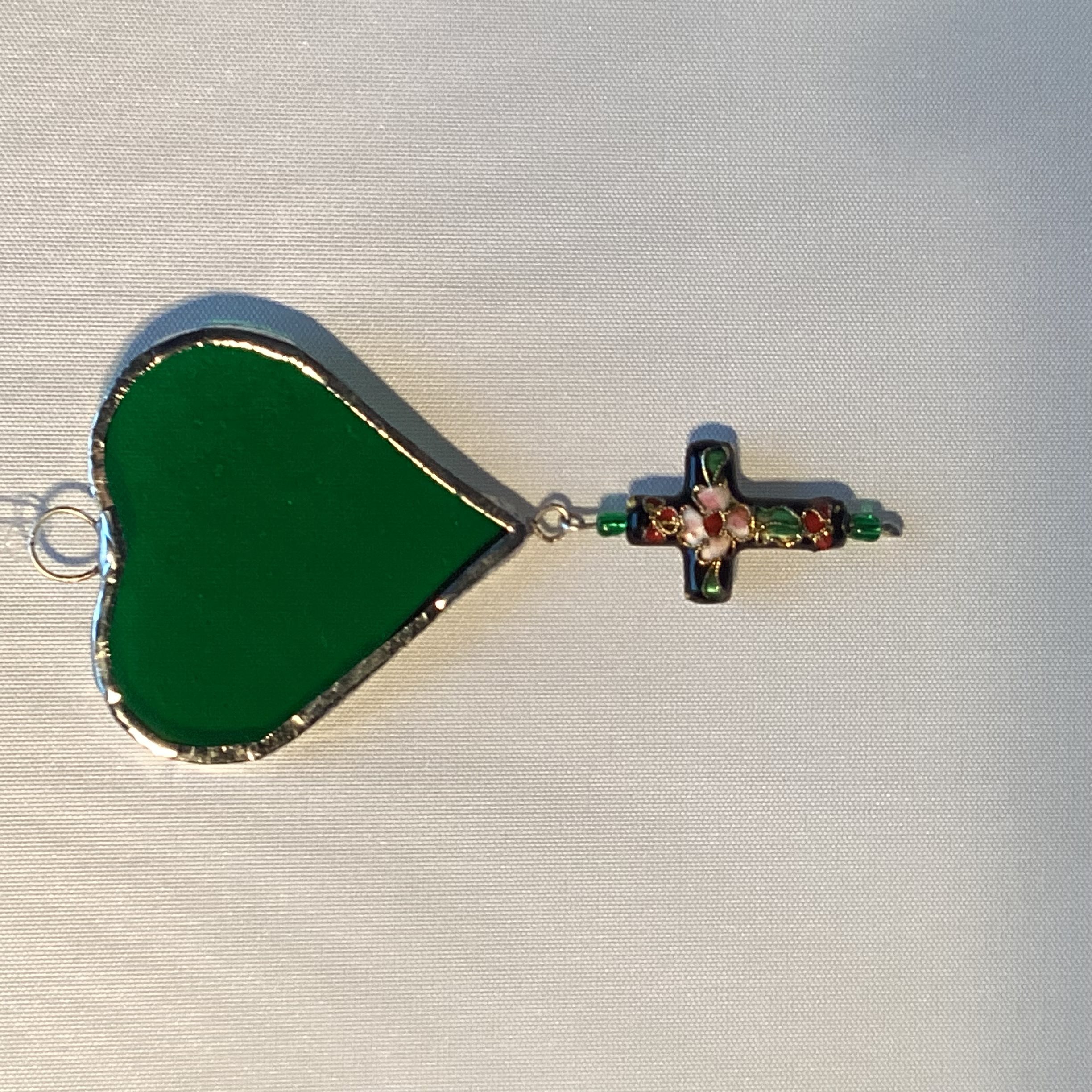 Glasinlood groen hart met zwart kruis. Een mooi groen hart met een zwart kruis of bedeltje. Een kado voor de liefde gecombineerd met met een klein kruis. Een uniek kado. We hebben meerdere soorten en kleuren in onze glasinloodkado webshop.