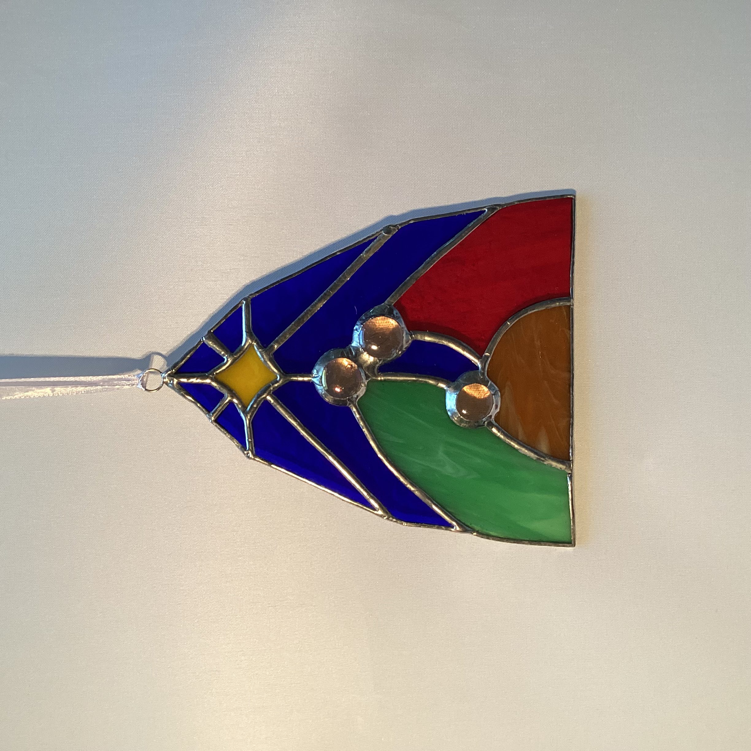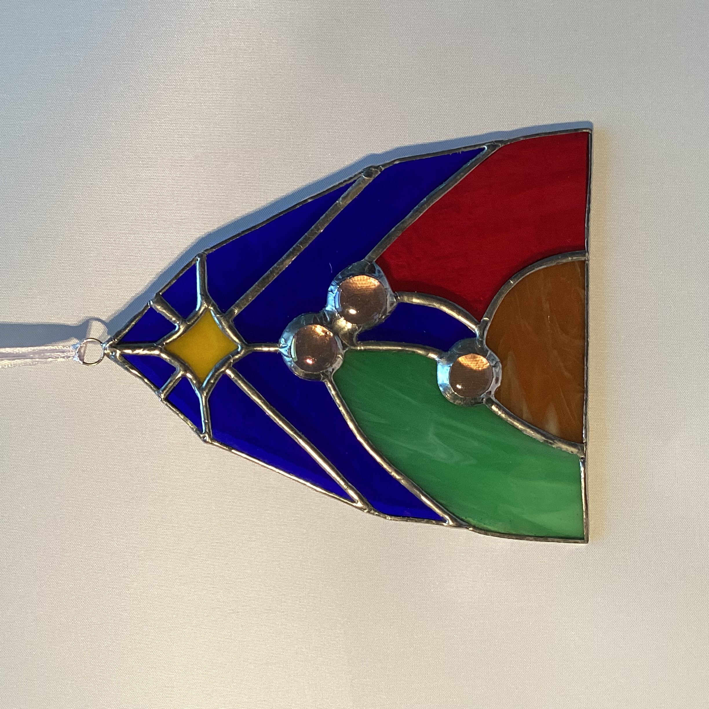 Glasinlood Kerststal. Hele mooie kleurrijke kerststal. Voor in de kerstboom of als raamhanger in uw woonkamer. Een uniek kado voor de kerstdagen, mooie kleuren die deze donkere dagen weer kleur geven.