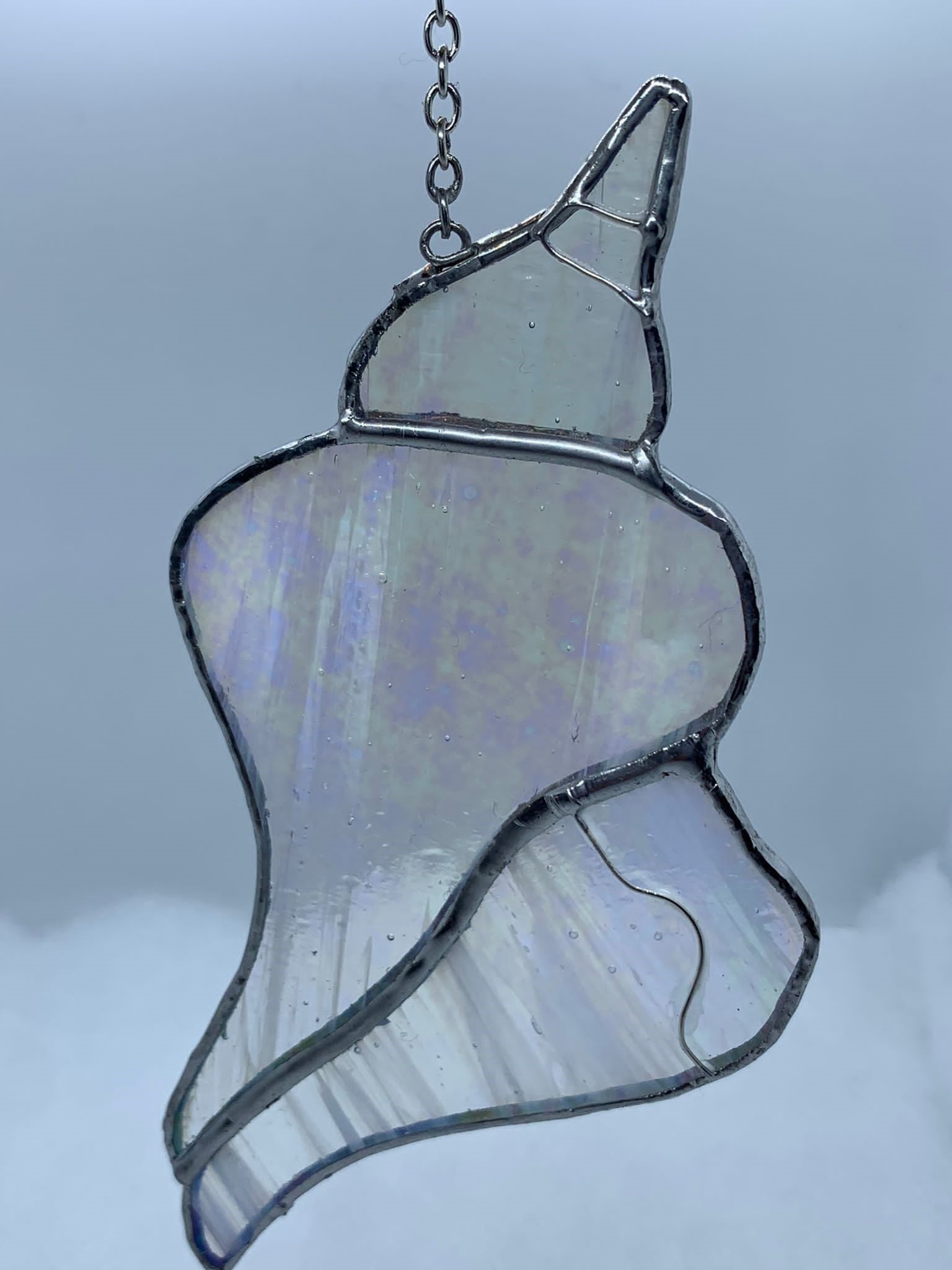 Glasinlood stekelhorn schelp. Een leuke en originele aanwinst voor wie van zee, schelpen of het strand houdt. Leuk om voor jezelf te kopen of iemand ermee te verrassen op een verjaardag of speciale gelegenheid.