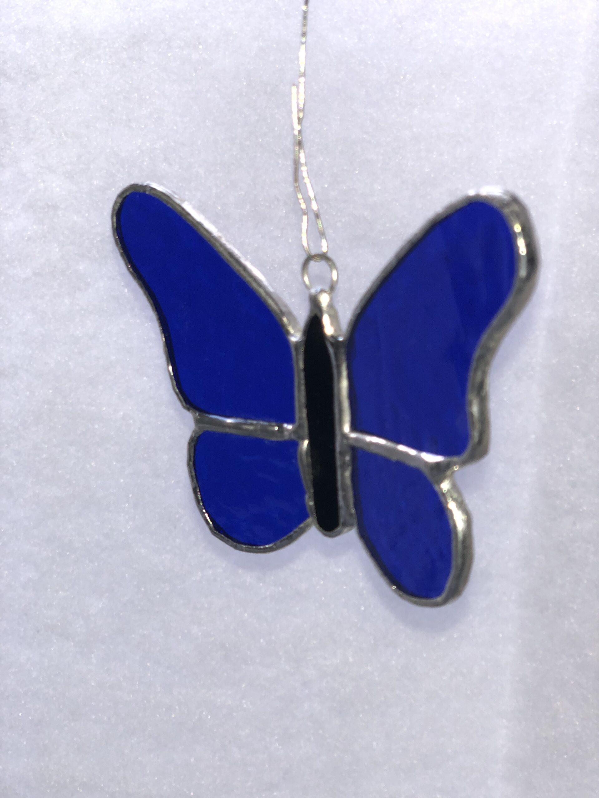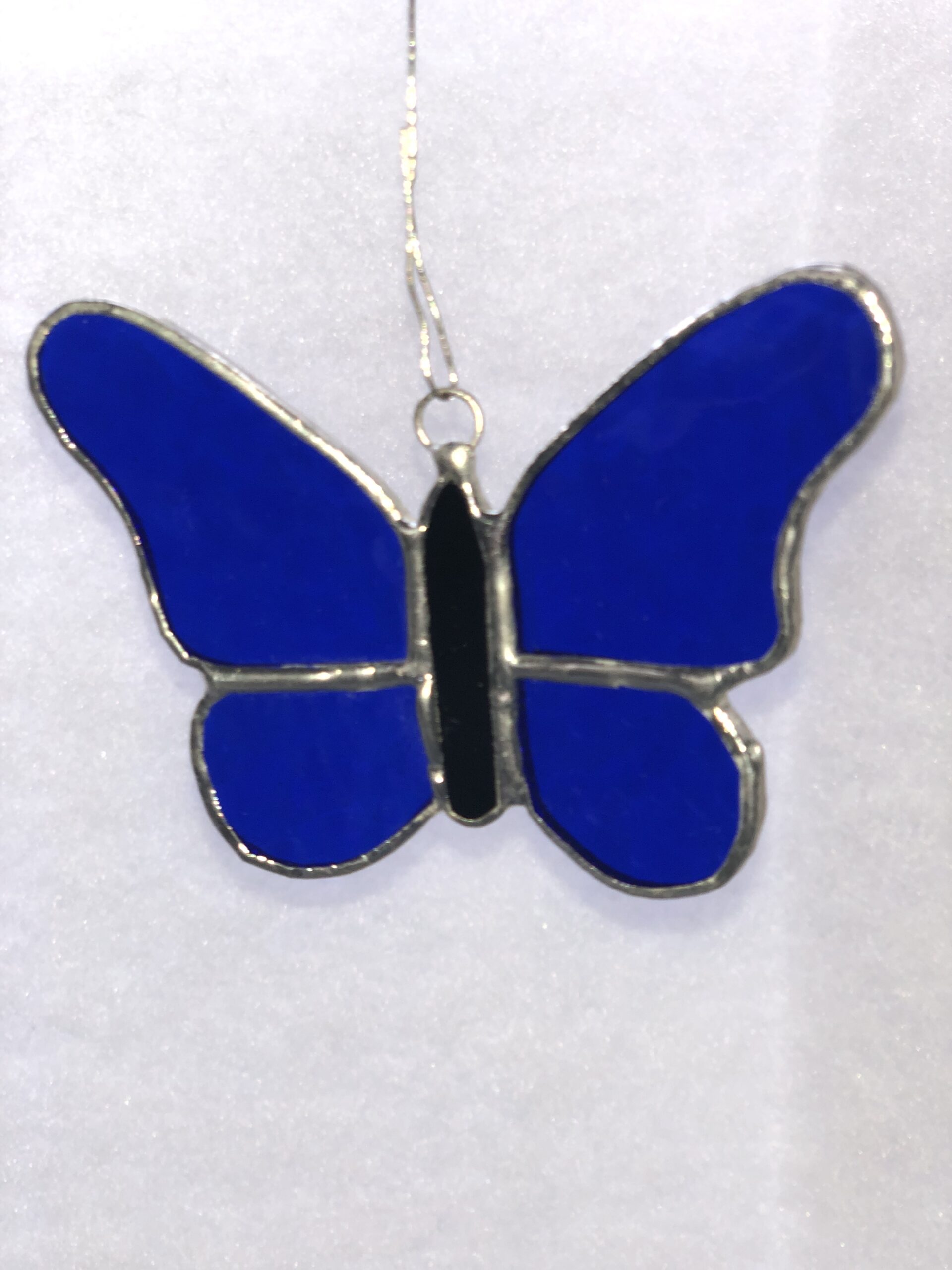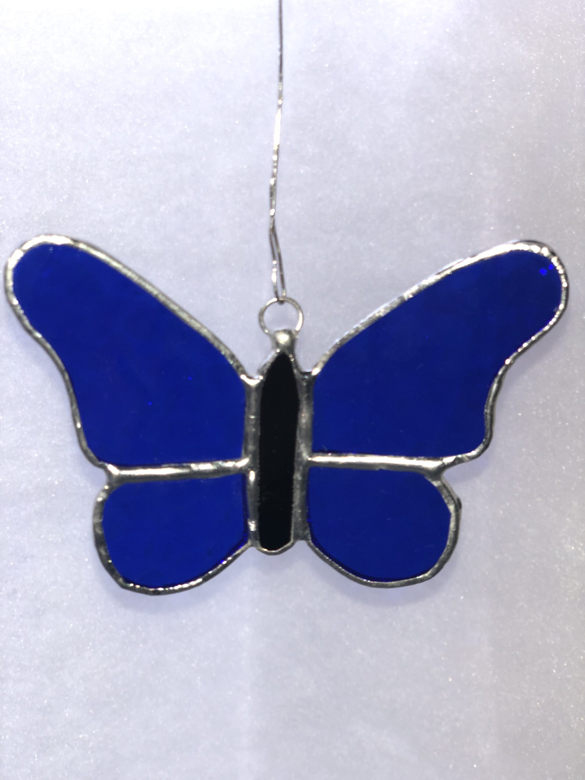 Een glasinlood vlinder blauw. Een prachtige blauwe vlinder. Een dynamisch plaatje en het lijkt net of de vlinder door uw kamer vliegt. Bent u vlinder liefhebber. Geef een handgemaakt glasinlood kado aan uw vriend, speciale relatie of familie.