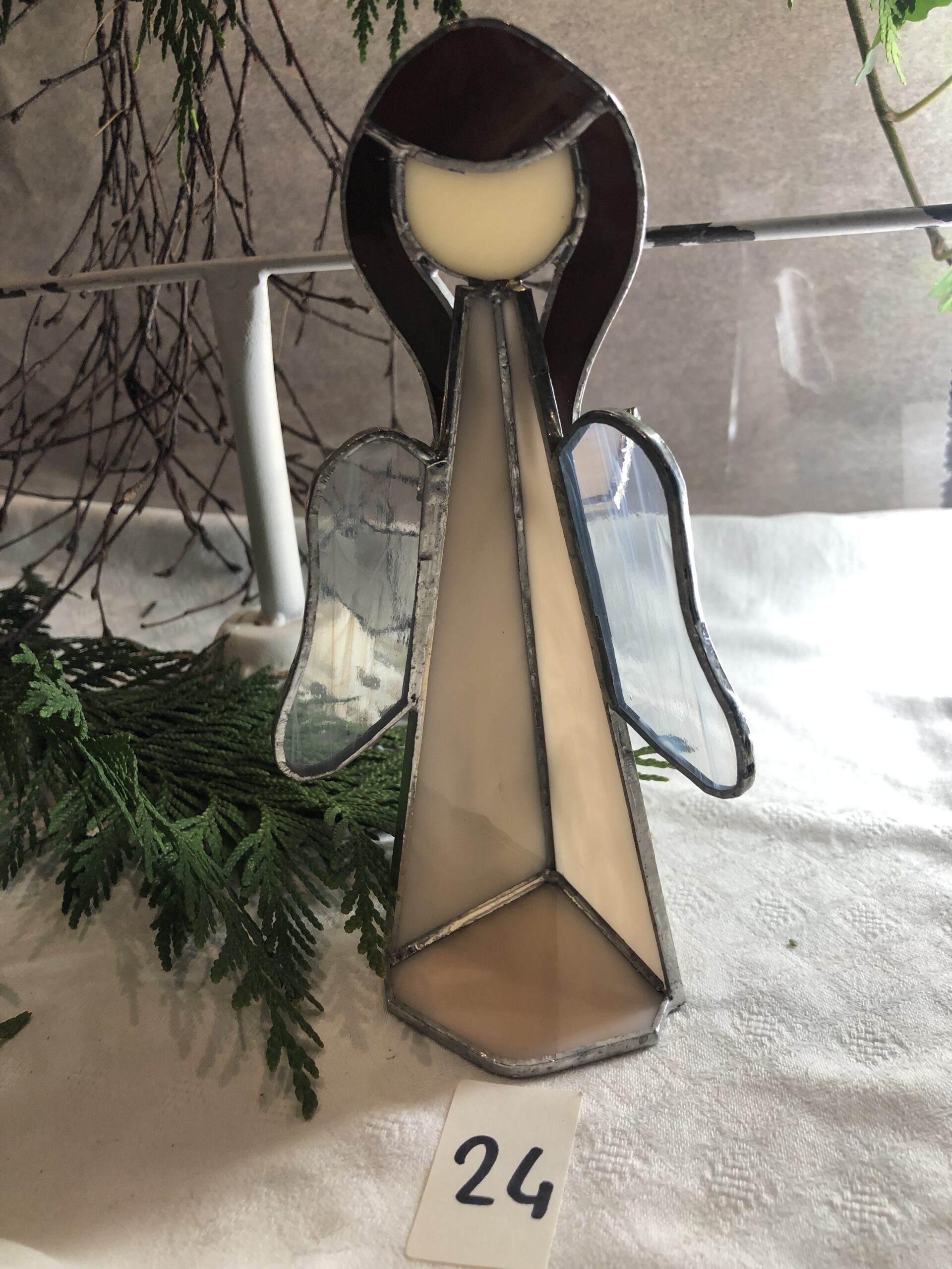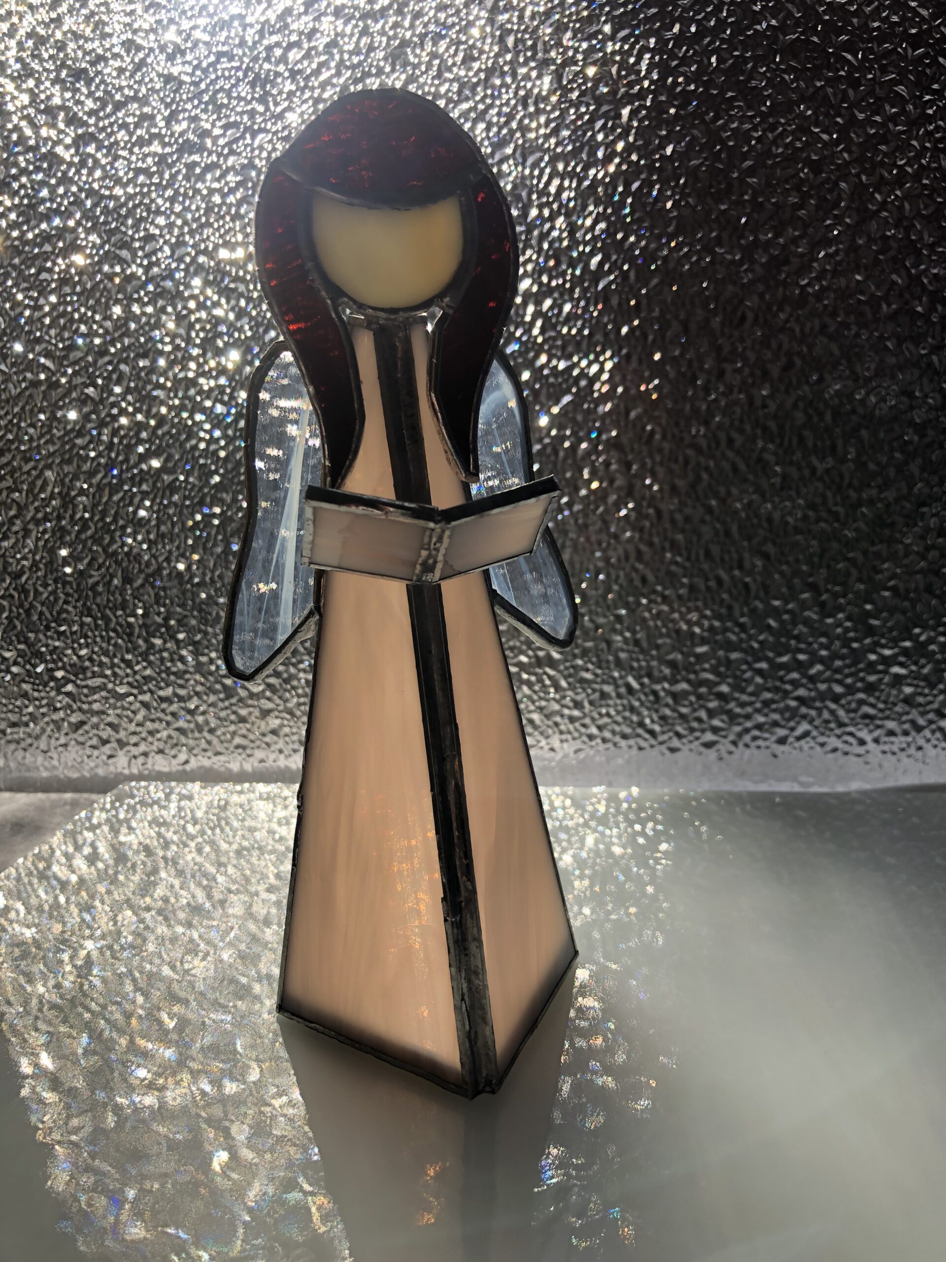 Een glasinlood waxine engel volledig in 3d. Deze engel is in unieke glas oud roze kleur en past mooi in uw stal of kerstlandschap. Volledig handgemaakt. Een uniek Tiffany exemplaar. Achter de engel kunt u ook een waxine lichtje of een led lampje laten branden. Dit geeft een prachtig effect. Dit artikel is al uitverkocht. U kunt dit artikel wel nabestellen, gewoon in de winkelwagen toevoegen, na betaling wordt zsm een nieuw exemplaar gemaakt.